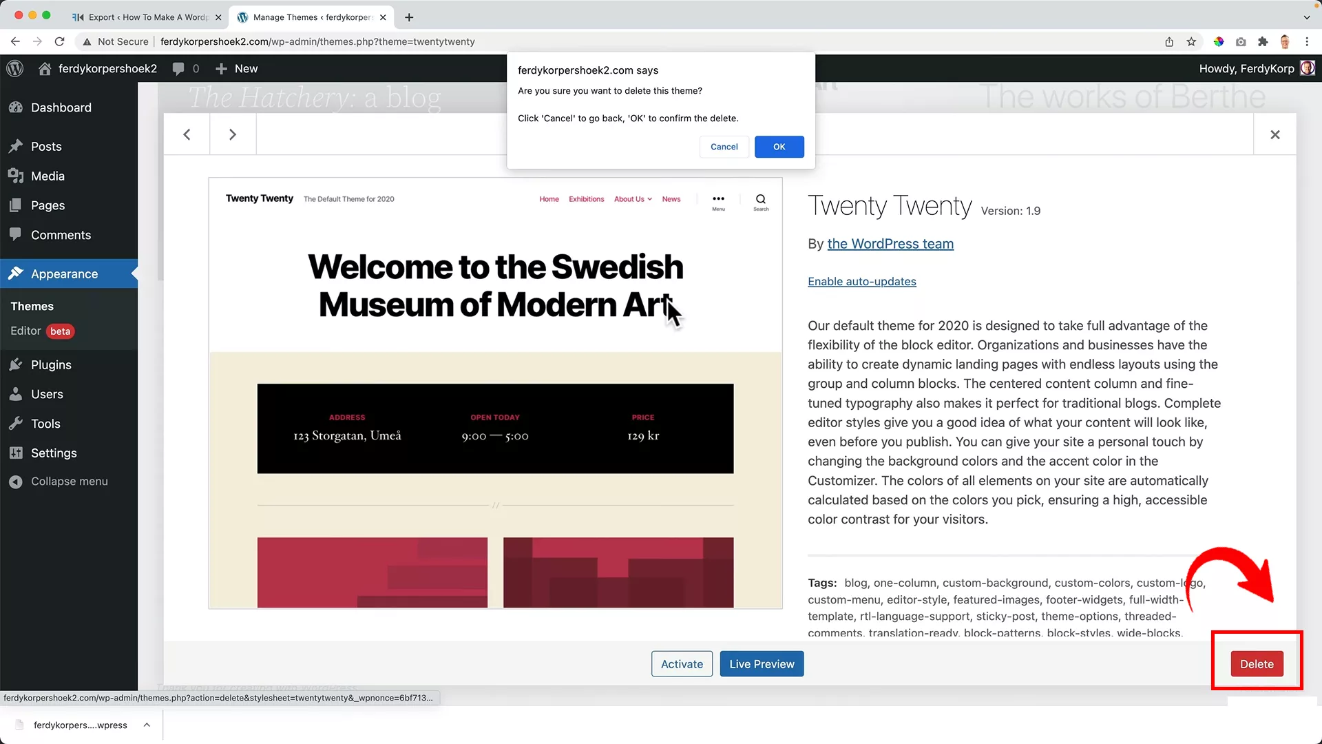 Finally, go to Appearance -> Themes and delete all themes that aren’t active.