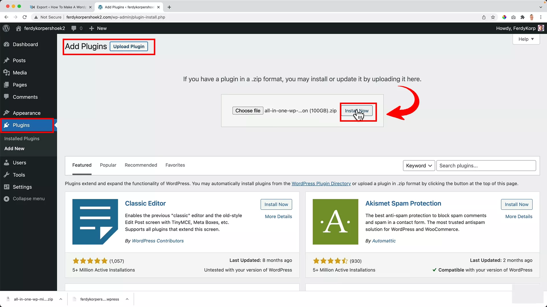 First, we’ll need to install a plugin called All-in-One WP Migration.