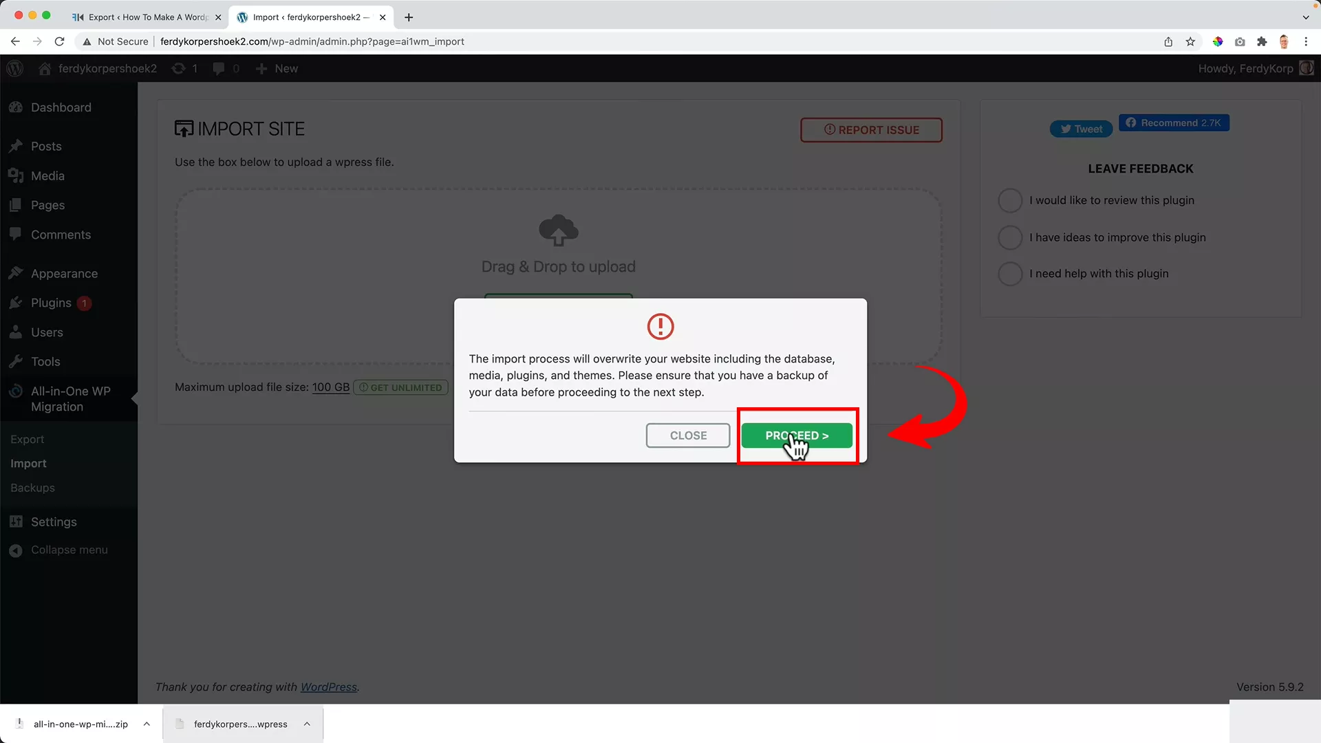 However, don’t install the All-in-One WP Migration plugin on your new domain yet. Why, you may ask?